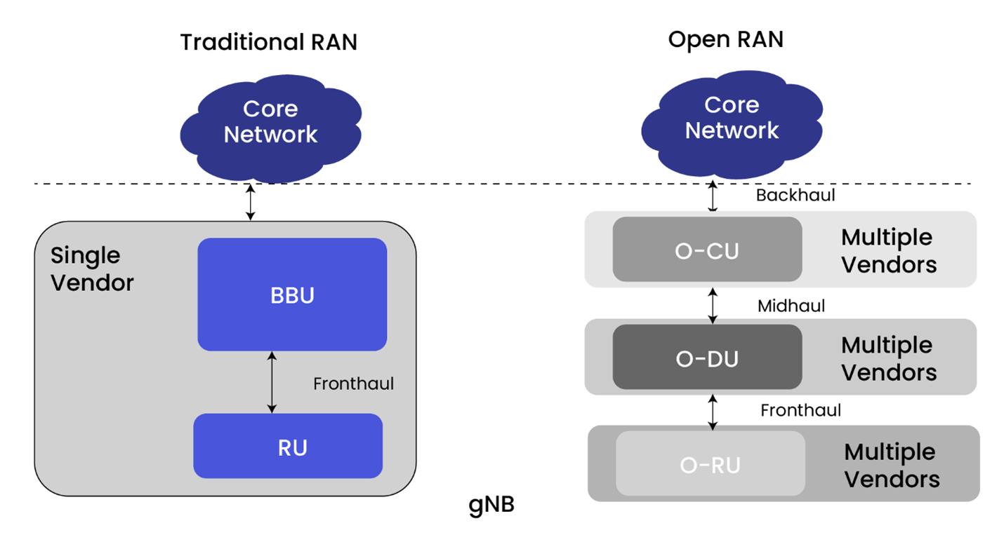 RAN and Core Network (CN) mostly contribute 80/20 % respectively in the network deployment costs. This makes RAN the most challenging and expensive part of the network infrastructure. Conventional RAN frameworks constitute proprietary components that depend on hardware-based, centralized, single-vendor modules. These systems lock telecom SPs with particular vendors and expensive integrations, regularly restricting their capability to scale and transform.